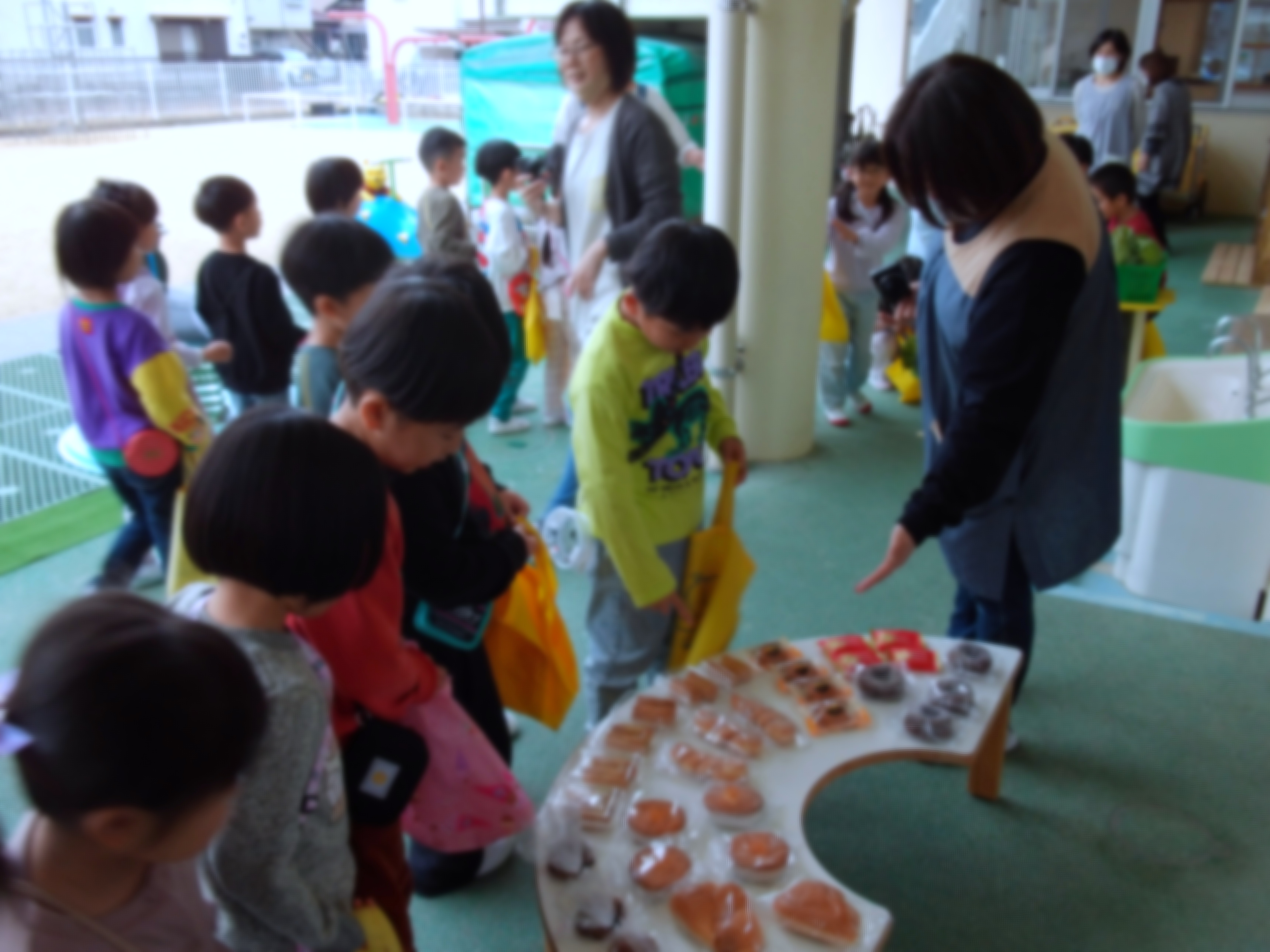 年長児を対象に、「青空マーケット」を開催しました。先生方が準備したお店で