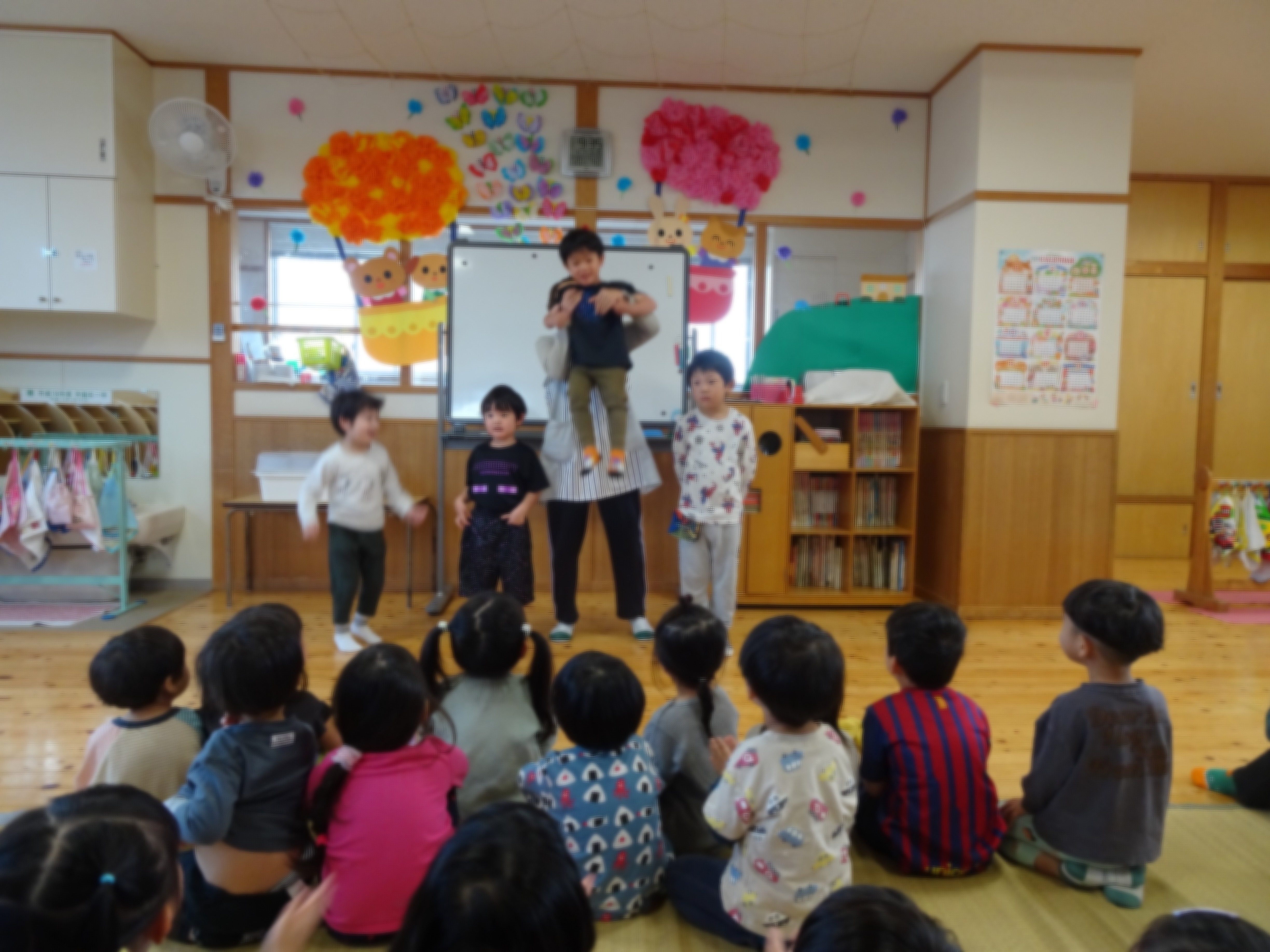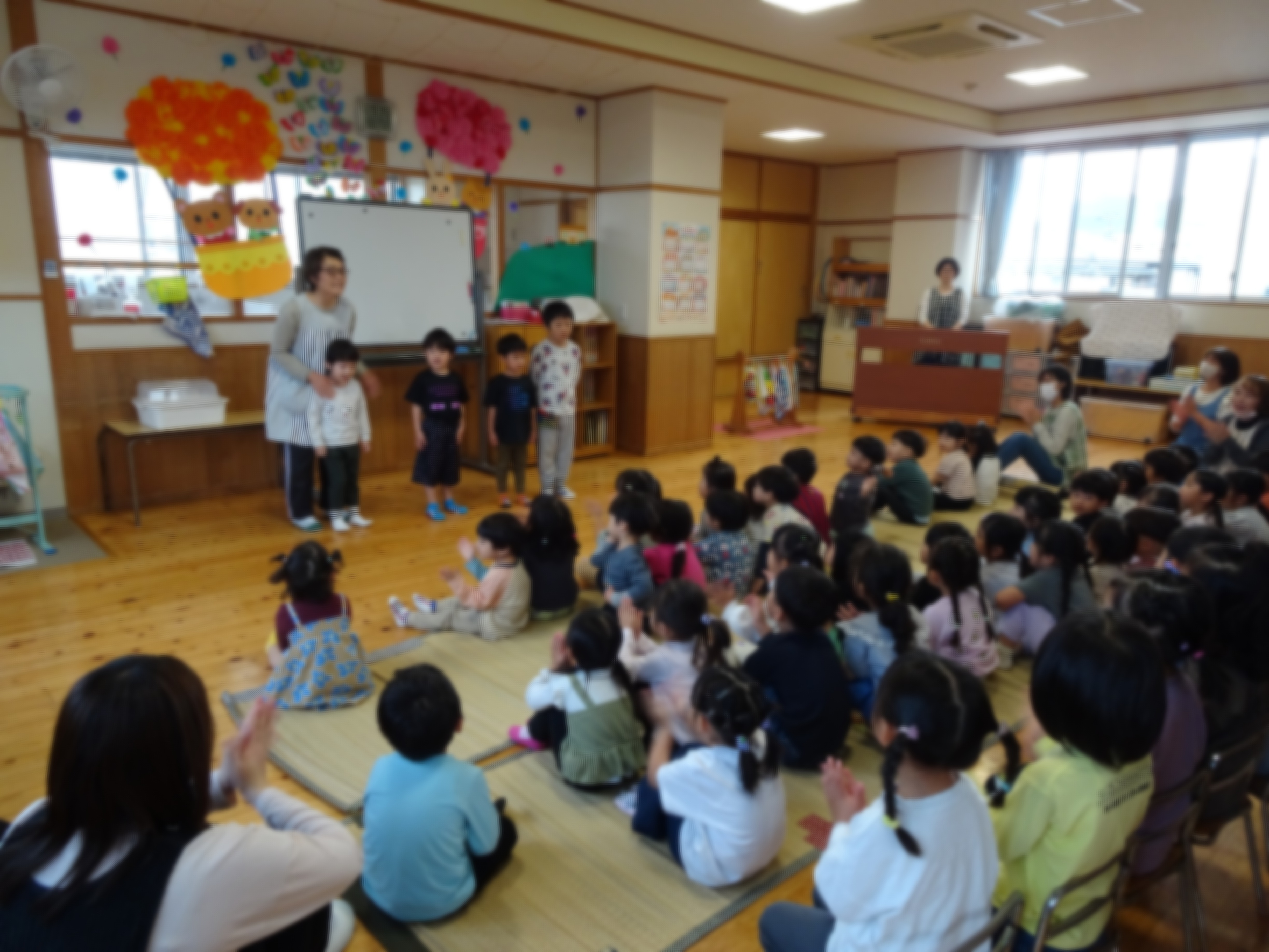 - 0歳児から5歳児の園児が劇や歌、演奏に取り組んだ成果を披露する発表会がありました。緊張気味のこどもたちでしたが、ご家族みんなに見ていただき、拍手をもらえて園児たちはすごく嬉しそうでした。今年も大盛況のうちに無事終えることができてよかったです。